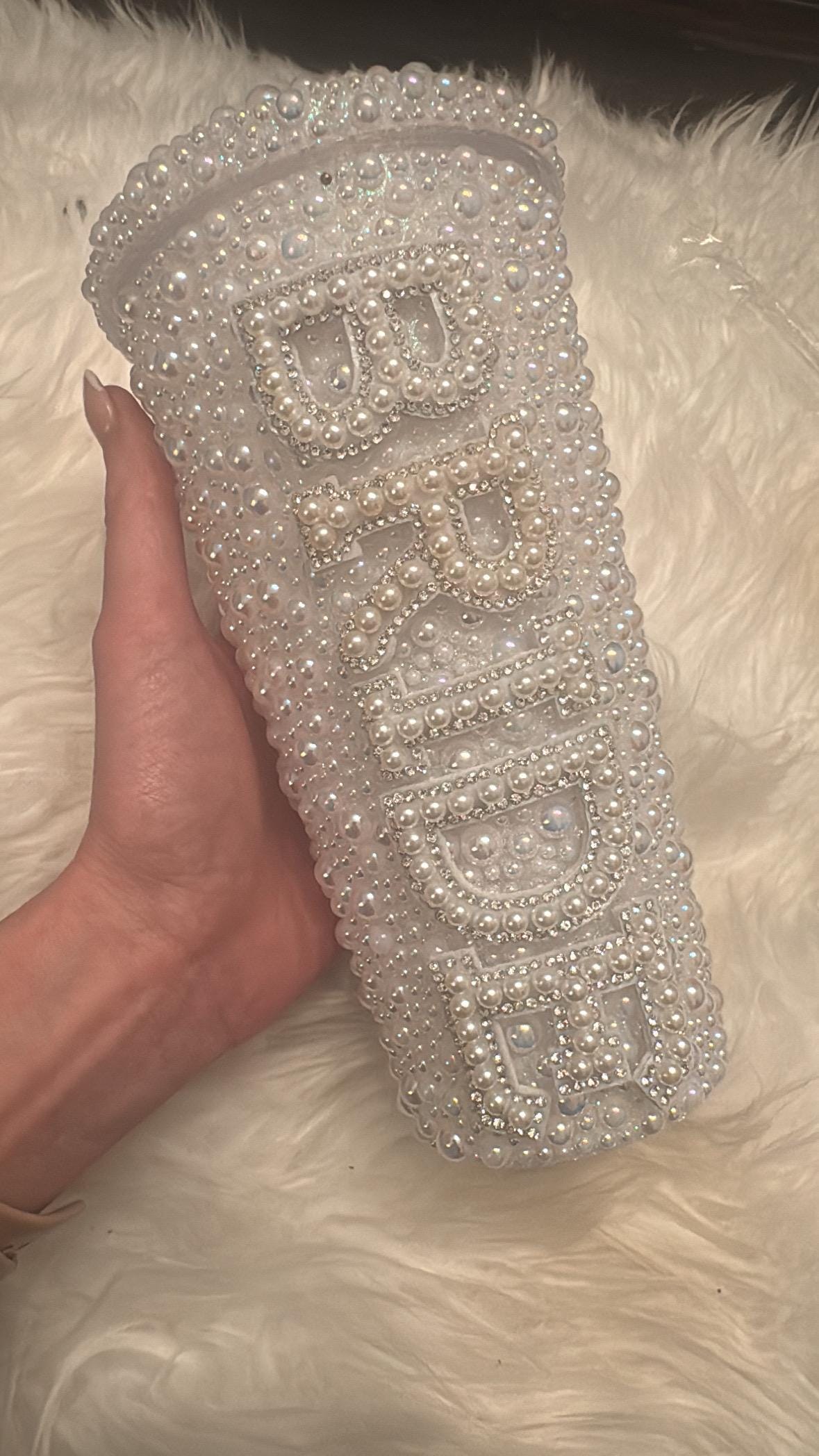Elevate your hen party or wedding celebration with this reusable trending cold cup adorned with pearls and an embellished "bride." The dazzling glitter adds a touch of magic to your drink, while the sparkling "bride" embellishment adds elegance and charm. Add some bling to your drink